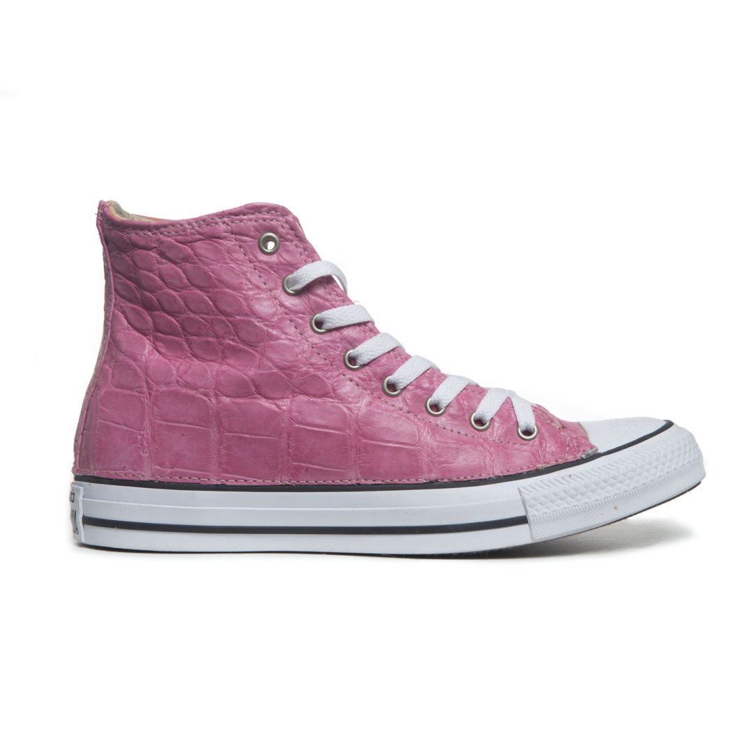 ConverseĀ® Chuck Taylor All Stars High-Top Sneakers embellished with Authentic Alligator Skin in Pink