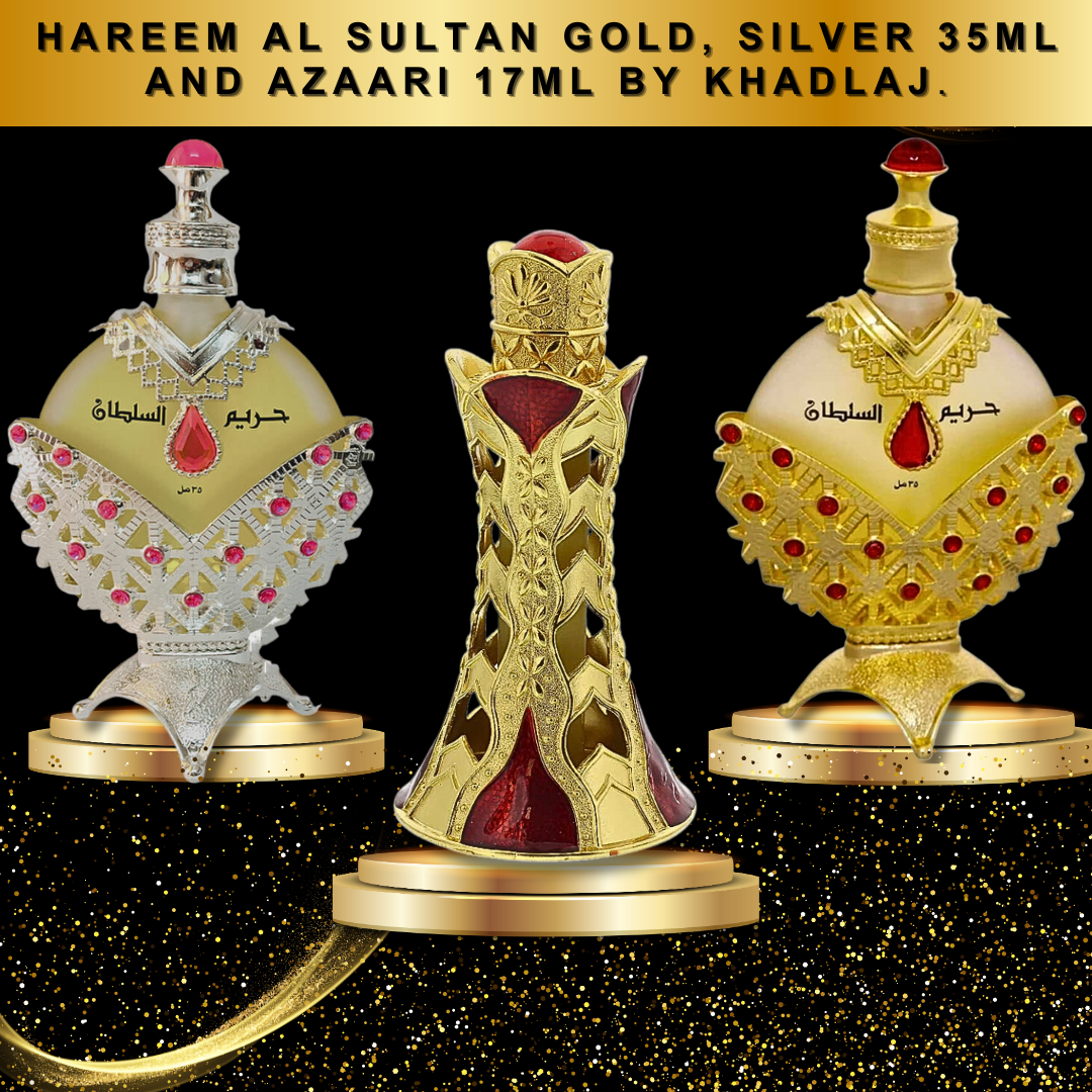 Hareem Al Sultan Gold & Silver Perfume Oil – 35 ML, Azaari CPO 17Ml by Khadlaj.