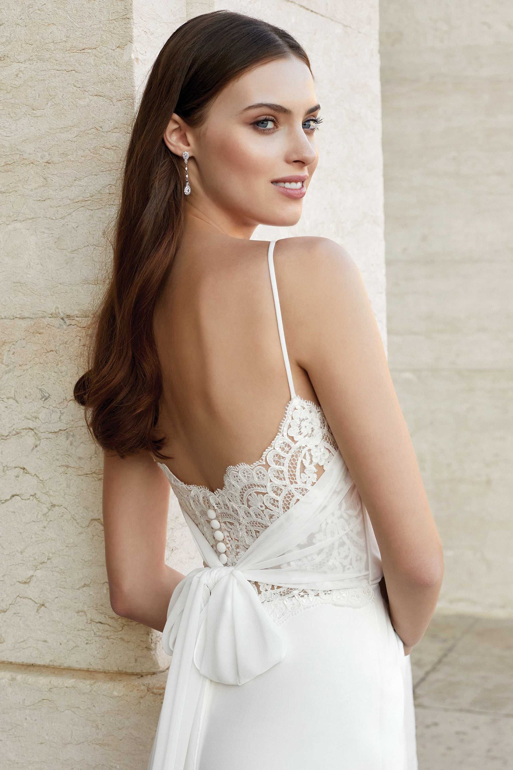 Stretch Crepe Fit and Flare with Chiffon Tie Back