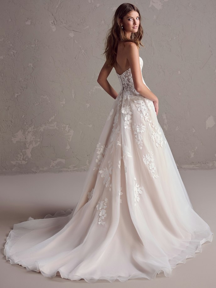 Strapless Sweetheart Neck A-Line Bridal Gown With Cottagecore Floral Lace