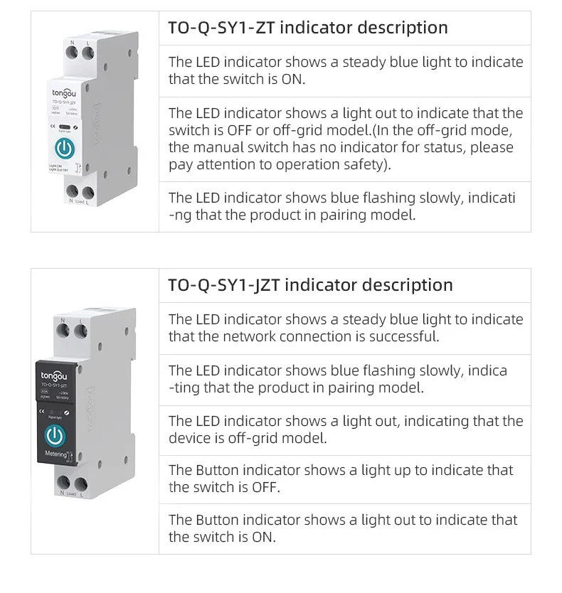 Wiring: Power must enter from the top and must be Live line + Neutral Line (L+N). Live line + Live line (L+L) cannot be used.