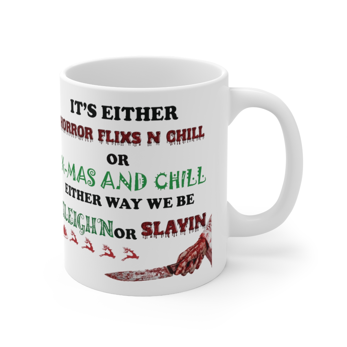 Warm-up with a nice cuppa cocoa/ cuppa tea/ cuppa coffee out of this customized ceramic coffee mug. Personalize with that extra creepy cool Holiday design you wont want to miss. Make that first sip of “aaahhh!”, a moment provided by you even better. It’s BPA and Lead-free, microwave & dishwasher-safe, and made of white, durable ceramic in 11-ounce size. Thanks to the advanced printing tech, your designs come to life with incredibly vivid colors – the perfect gift for coffee, tea, and chocolate lovers all kinds.
