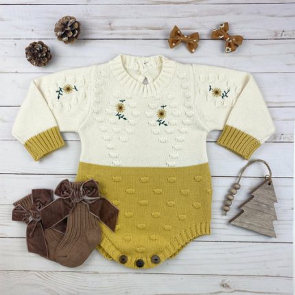 sunflower knitted onesie || gold/cream