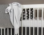 Elegant yet playful, the OLLI+LIME dot crib Bedding set brings fun into the nursery while maintaining a modern design appeal. Black dots on a white backdrop give the versatility to match any modern nursery design while the 100% cotton percale fabric is sure to give baby comfort from first sleep. Urban on the outside and soft and cuddly to the touch, the OLLI+LIME dot line uses simple dot placement to make a design statement in any modern nursery. Making the collection complete is the modern OLLI+LIME charcoal crib skirt and our super soft and fun Dot Baby blanket. Please check out our Deluxe version of the bedding set which includes our beautiful grey weave blanket.