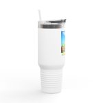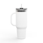 This insulated travel mug is designed for adventure, featuring a durable 100% stainless steel body and a straw with a lid for enhanced convenience on the go. With a generous 40oz (1.183l) capacity, it keeps your beverages at the perfect temperature thanks to its double-wall insulation. The powder-coated finish adds a sleek touch and is available in eight vibrant color variants so you can find that perfect match.