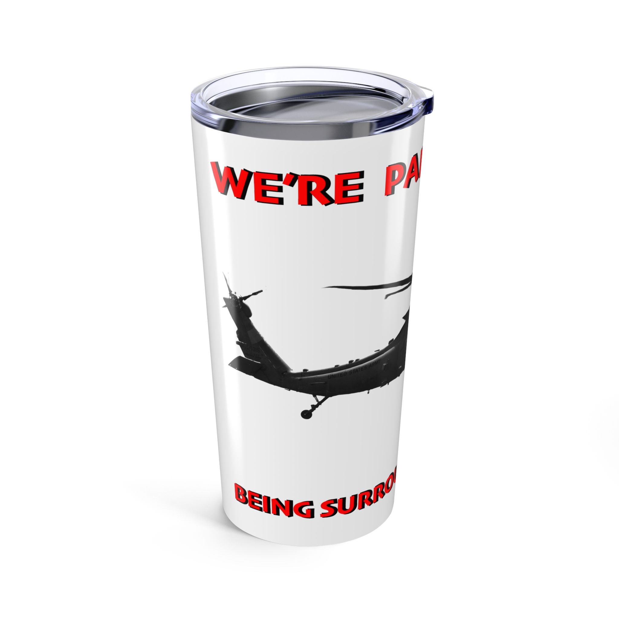 .: Vacuum insulated steel body with a clear push on lid with a rubber gasket